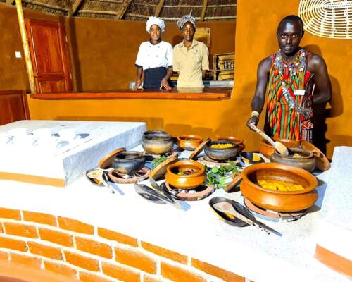 The chef strives every day to create the most delicious dishes from various cuisines around the world. Freshly prepared and lovingly served by one of his colleagues. Enjoy a drink by the fireplace or play a Tanzanian game at the bar before settling down for a wonderful night's sleep in one of the bungalows or Maasai huts.
