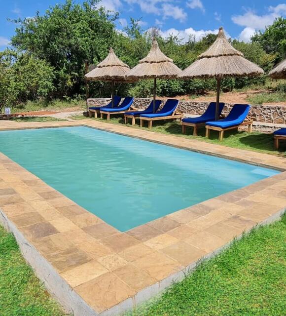 Fancy a refreshing dip in the pool after a long day in the safari jeep? Africa Safari Maasai Boma is the place to be. The pool is located next to the restaurant and bar and features several comfortable loungers with fixed parasols. This pool is also the perfect spot to watch the sunrise. Magical colors appear as the sun rises from behind the Kenyan hills. That early alarm is definitely worth it.